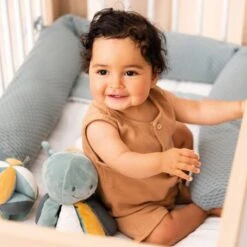 Cette jolie peluche pieuvre vert de la marque NATTOU sera le compagnon idéal de bébé pour de tendres câlins. Une jolie peluche NATTOU toute douce à offrir sans modération.